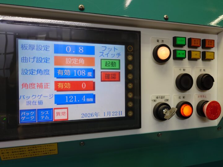 当店自慢の超高精度動力ベンダーです。4300ミリ迄の板金を1度単位の角度と、0.1ミリ単位の寸法で加工出来ます。